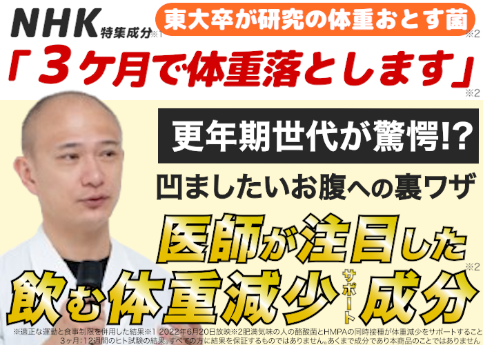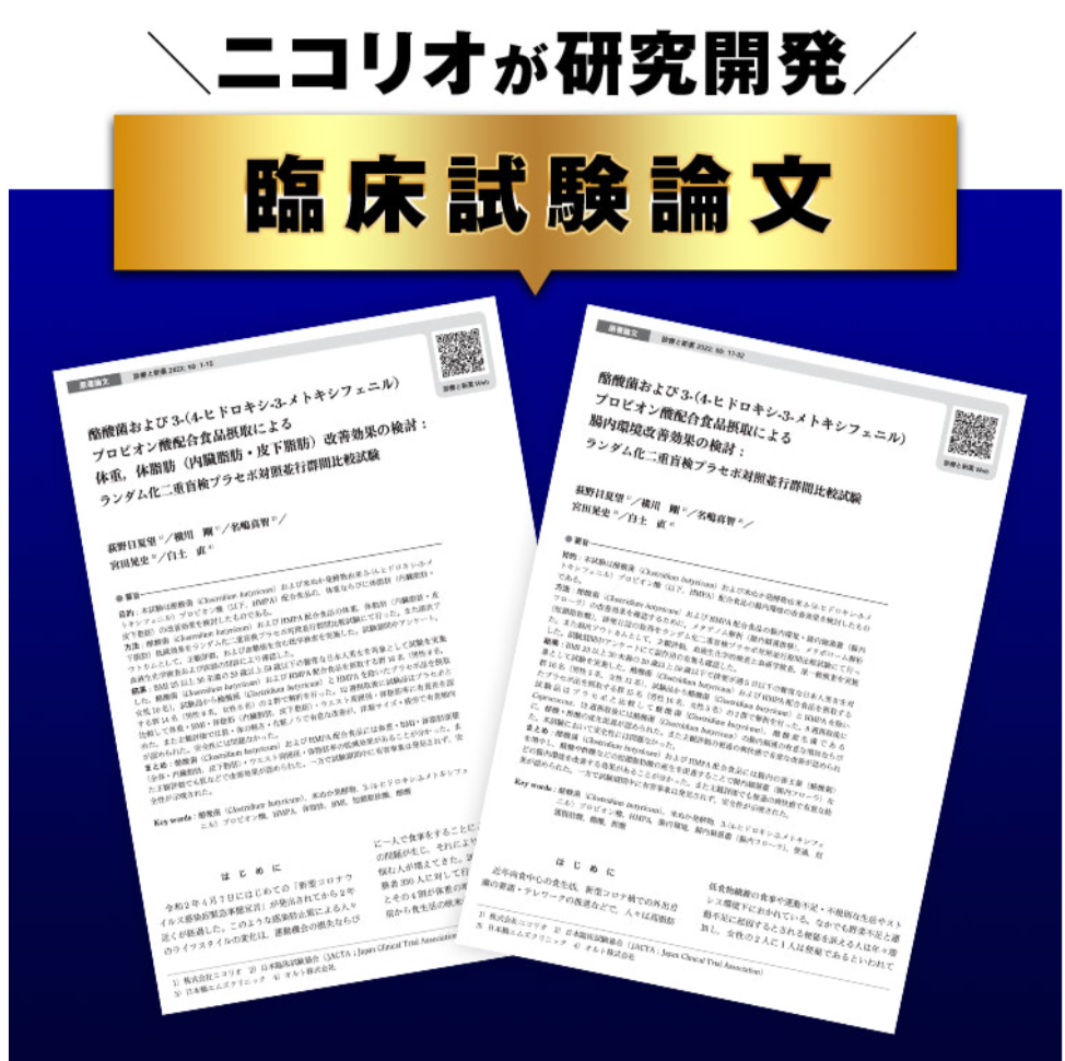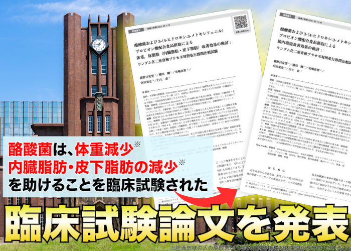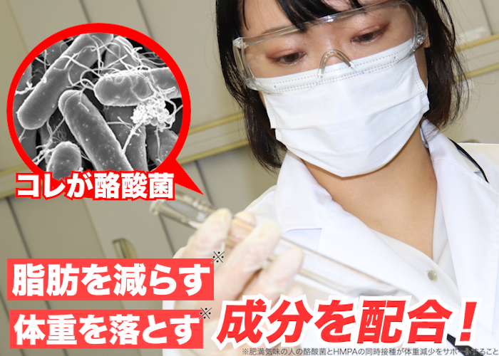 ※1 2022年6月放映※2肥満気味の人の酪酸菌とHMPAの同時接種が体重減少をサポートすること
